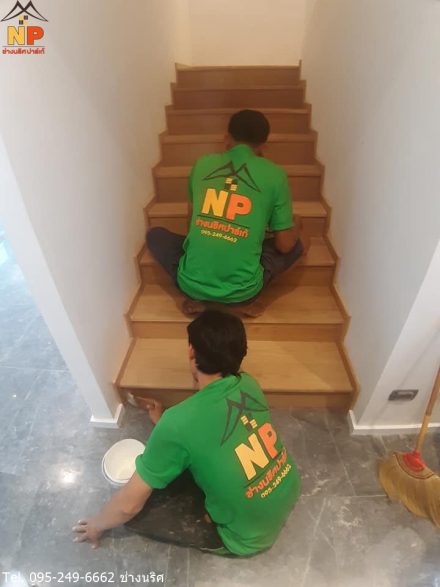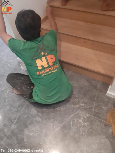 ปูขัดทาปาร์เก้ ติดตั้งบนได ทาวน์โฮม